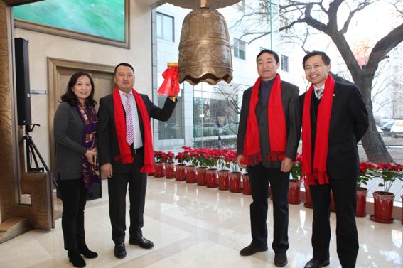 2016年1月22日,集體敲鐘儀式在北京金融大街的全國中小企業(yè)股份轉(zhuǎn)讓系統(tǒng)有限責(zé)任公司一樓大廳舉行,公司領(lǐng)導(dǎo)參加了隆重的掛牌敲鐘儀式。